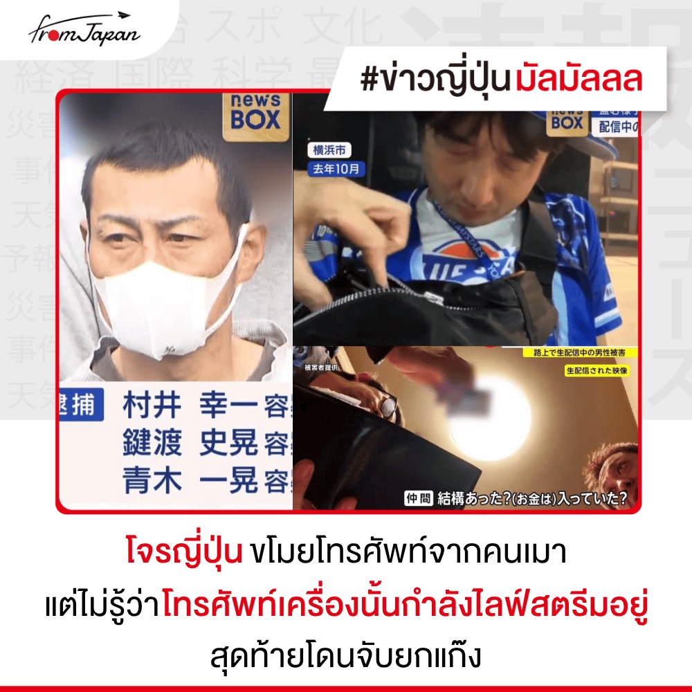 โจรญี่ปุ่นขโมยโทรศัพท์จากคนเมา แต่ไม่รู้ว่าโทรศัพท์เครื่องนั้นกำลังไลฟ์สตรีมอยู่