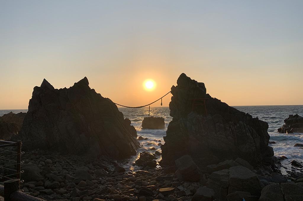 ถ้าหากเราหันหน้าเข้าสู่ทะเล โขดหินที่อยู่ทางด้านขวาจะเป็นตัวแทนของมังกรตัวผู้ เรียกว่า ‘โอตะสึ’ (Otatsu) ส่วนโขดหินทางด้านซ้ายเป็นตัวแทนของมังกรเพศเมีย เรียกว่า ‘เมะตะสึ’ (Metatsu) ยิ่งในช่วงเย็น วิวที่นี่จะสวยงามและดูลึกลับมาก เพราะพระอาทิตย์จะตกระหว่างโขดหินนั่นเอง