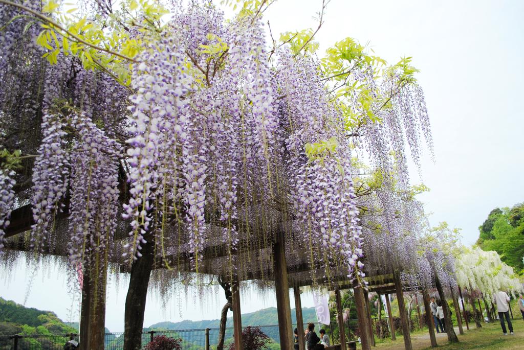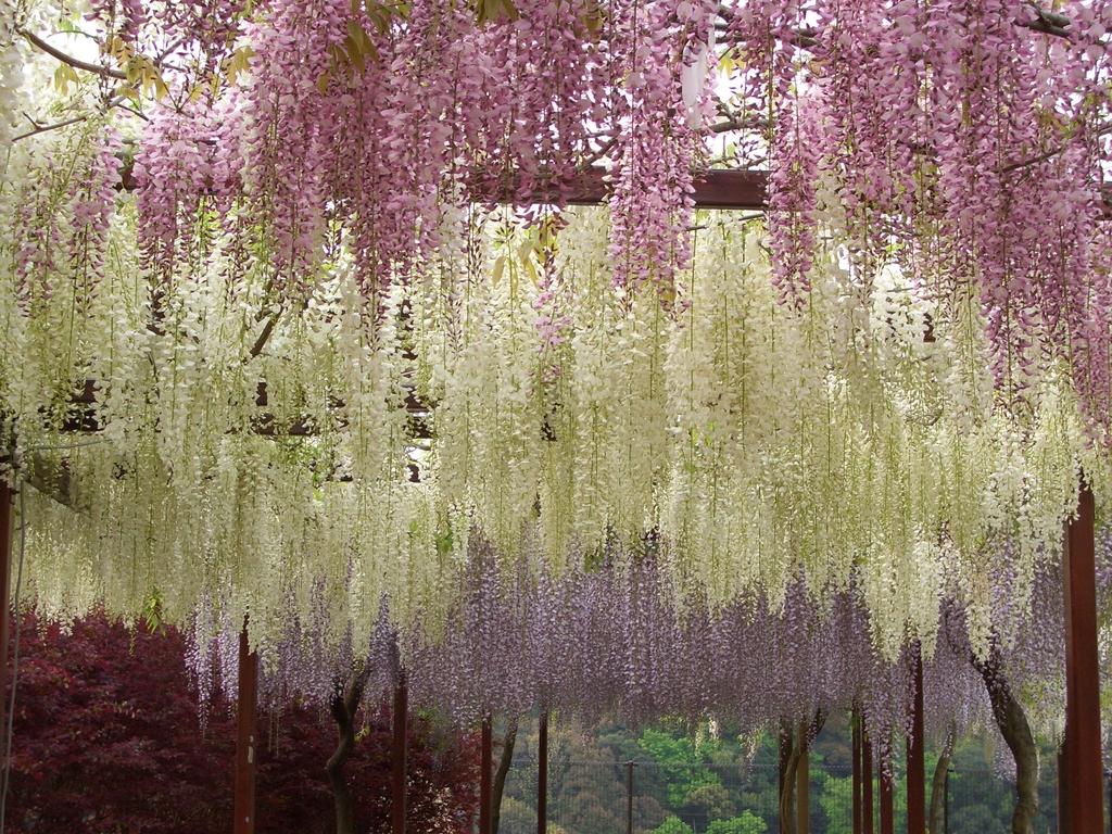 ดอกวิสทีเรียเหล่านี้ได้รับบริจาคมาในปี 2000 จำนวน 100 ต้นจาก 23 สายพันธุ์ ซึ่งนับตั้งแต่นั้นมาก็ได้รับการดูแลอย่างดีจากผู้คนในท้องถิ่น จนถึงปัจจุบันดอกวิสทีเรียเหล่านี้ก็ยังคงงดงามและผลิดอกให้เราได้ชื่นชมกันอยู่เช่นเคย และด้วยความที่สวนแห่งนี้ตั้งอยู่ท่ามกลางธรรมชาติ บรรยากาศจึงเย็นสบาย ภาพของดอกวิสทีเรียที่ห้อยระย้าพลิ้วไหวไปตามสายลม เมื่อต้องแสงแดดที่ส่องผ่านมานั้นช่างงดงามราวกับเวทมนตร์เลยทีเดียวค่ะ