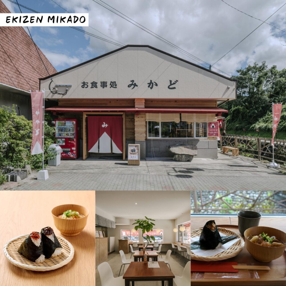EKIZEN MIKADO (เอคิเซ็น มิคาโดะ) ตั้งอยู่ตรงข้ามสถานีคิริชิมะจิงกู โดยข้าวปั้นของที่นี่ทำมาจากข้าวคิริชิมะ เนื้อจะนุ่มฟูราวกับปุยเมฆ มีการคัดสรรวัตถุดิบอย่างพิถิพิถันและปรุงรสชาติแต่ละชิ้นด้วยความใส่ใจ นอกจากนี้ ที่ร้านยังมีเซตซุปมิโซะหมูให้ทานคู่ รสชาติอร่อยกลมกล่อม และยังมีบริการซื้อกลับบ้านอีกด้วย