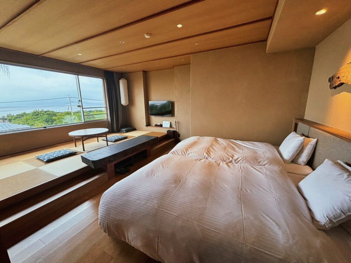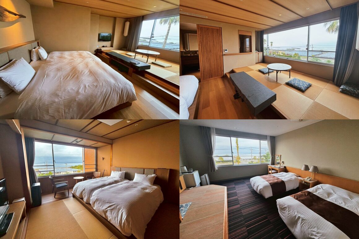 ห้องพักทุกห้องหันหน้าไปทางอ่าวคินโคะและภูเขาไฟซากุระจิมะทั้งหมด