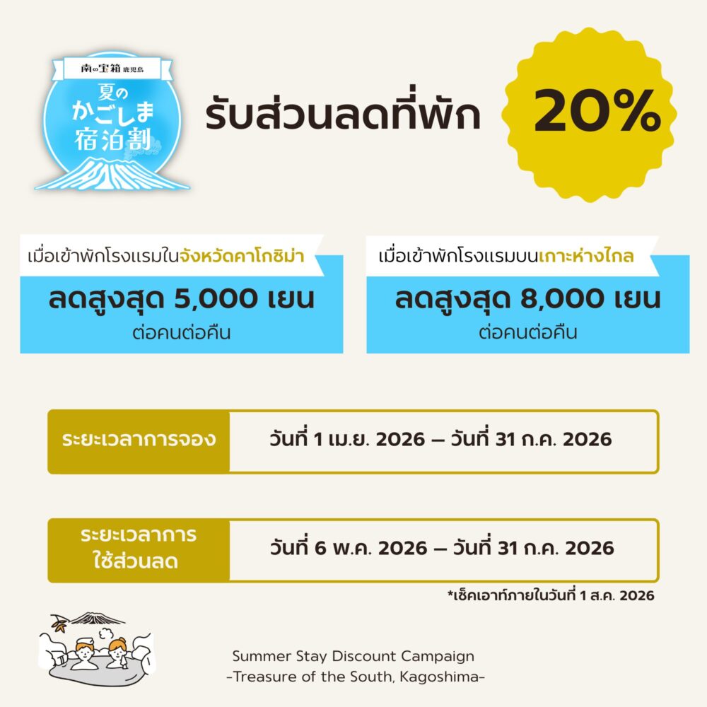 กลับมาอีกครั้ง! กับแคมเปญ เที่ยวคาโกชิม่าหน้าร้อนนี้ รับส่วนลดที่พัก 20%