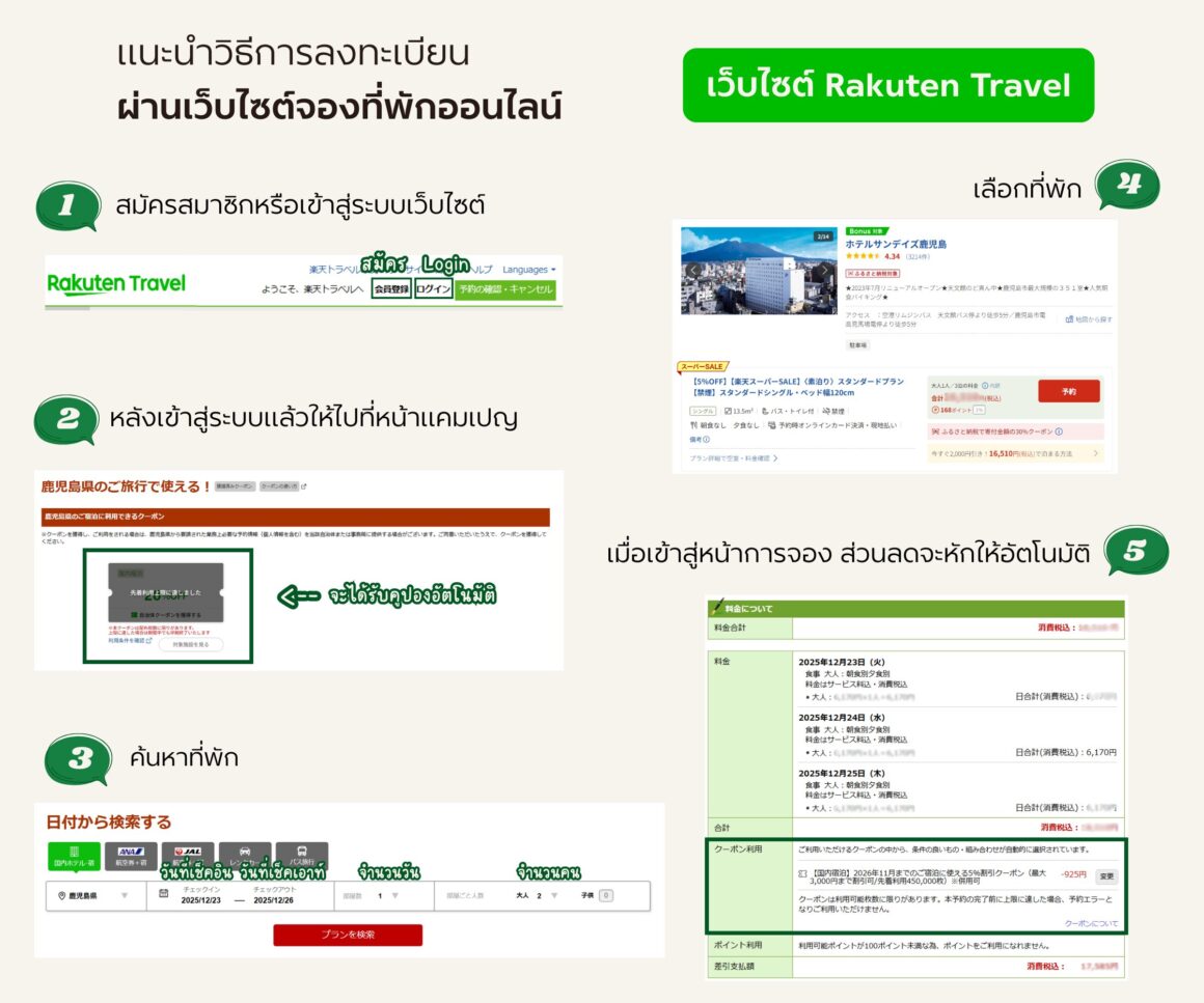 - หลังจากเข้าสู่ระบบแล้ว ให้ไปที่หน้าแคมเปญ : https://travel.rakuten.co.jp/
