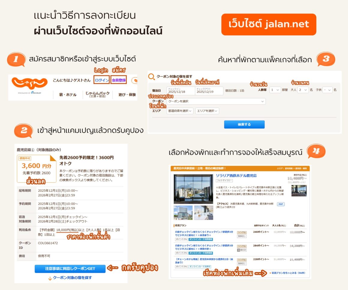 - หลังจากเข้าสู่ระบบแล้ว ให้ไปที่หน้าแคมเปญ : https://www.jalan.net/