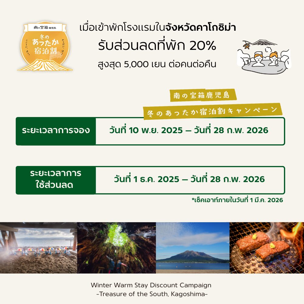 มีข่าวดีมาบอกต่อ! เที่ยวคาโกชิม่าหน้าหนาวนี้ รับส่วนลดที่พัก 20%