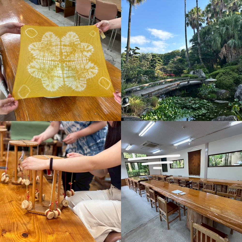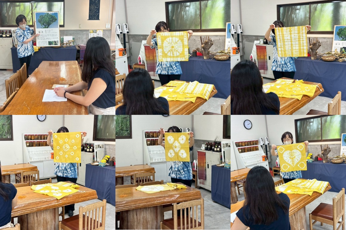 Kusaki-zome เป็นวิธีย้อมผ้าจากสีธรรมชาติโดยการต้มกลีบดอกไม้ พืช และกิ่งไม้ ซึ่งวิธีการย้อมผ้าเช่นนี้ยังเป็นหนึ่งในเทคนิคการย้อมผ้าโอชิมะ สึมุกิอีกด้วย การย้อมผ้าจากพืชเป็นหนึ่งในกิจกรรมเวิร์กชอปยอดฮิตของที่นี่เลยก็ว่าได้ โดยเราสามารถย้อมผ้าเช็ดหน้าสีสันสดใสให้เป็นเอกลักษณ์ของตัวเราเอง