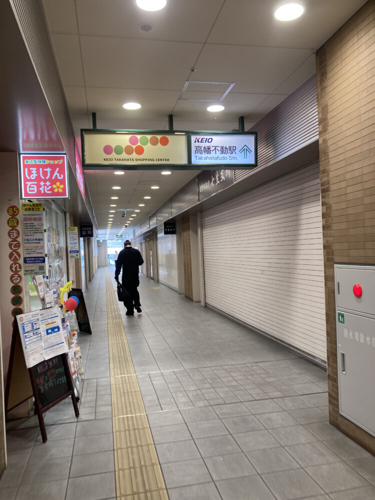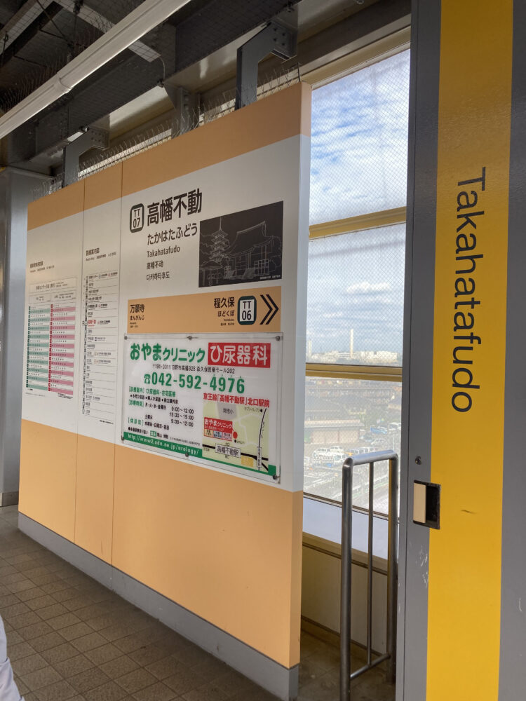 ส่วนสถานี Takahatafudo (TT-07) ใช้เวลาประมาณ 9 นาที ค่าโดยสาร 270 เยน ซึ่งรถไฟจากสถานีนี้จะออกที่ชานชาลาหมายเลข 2 เมื่อเข้าไปในสถานีให้เดินไปทางซ้าย ก็จะเห็นป้ายนำทางแบบนี้ก็เดินขึ้นบันไดไปได้เลย