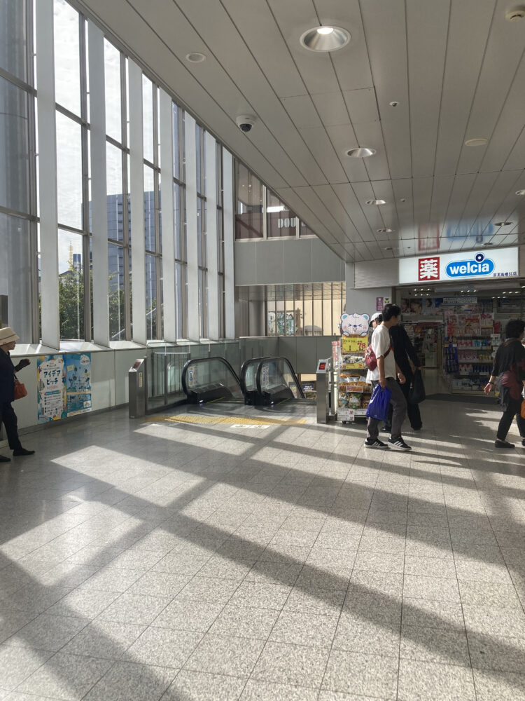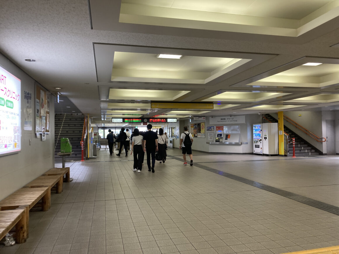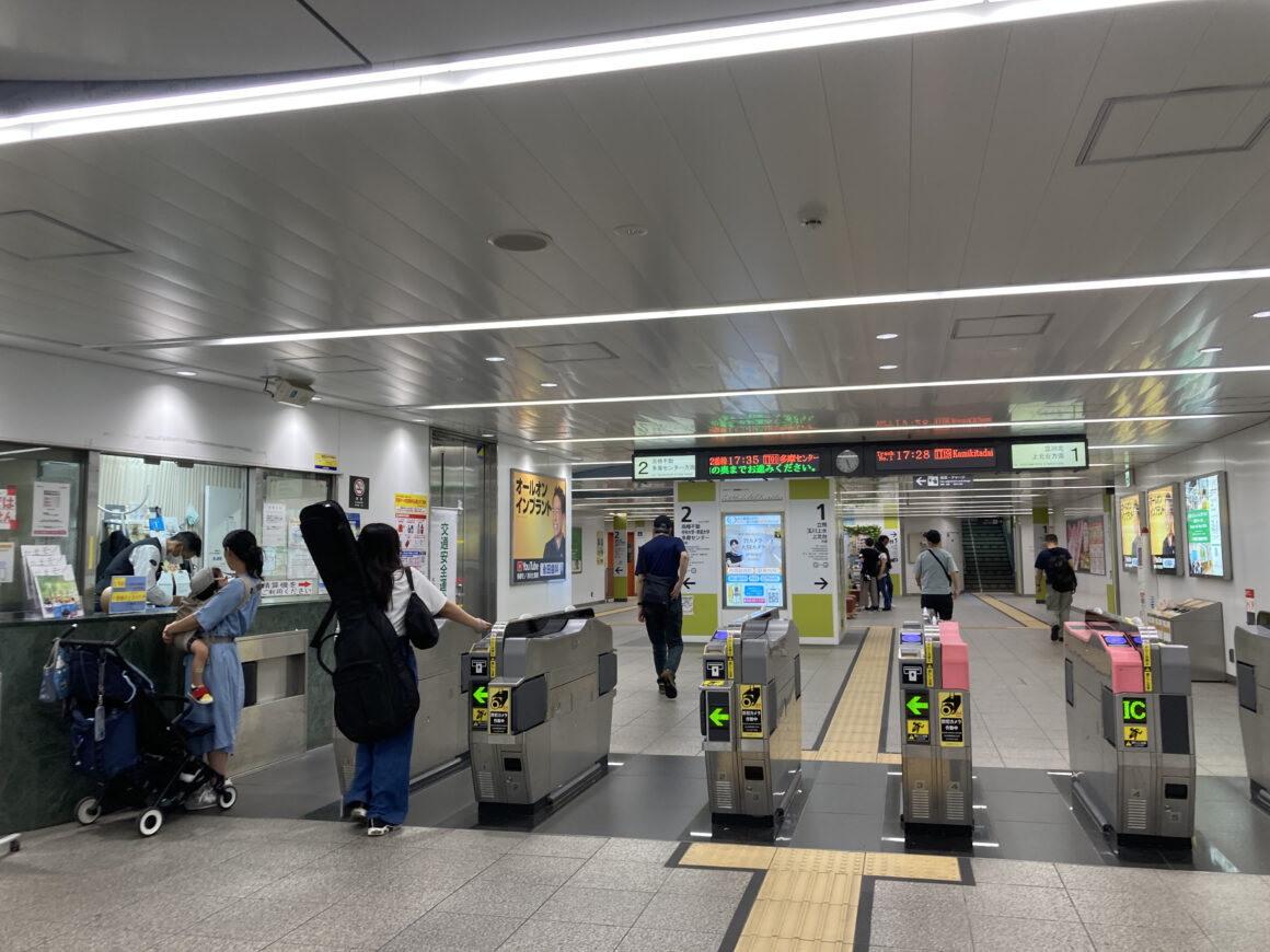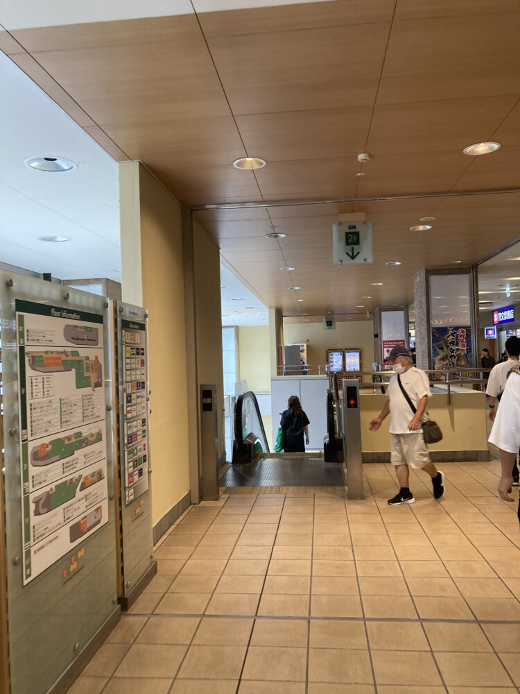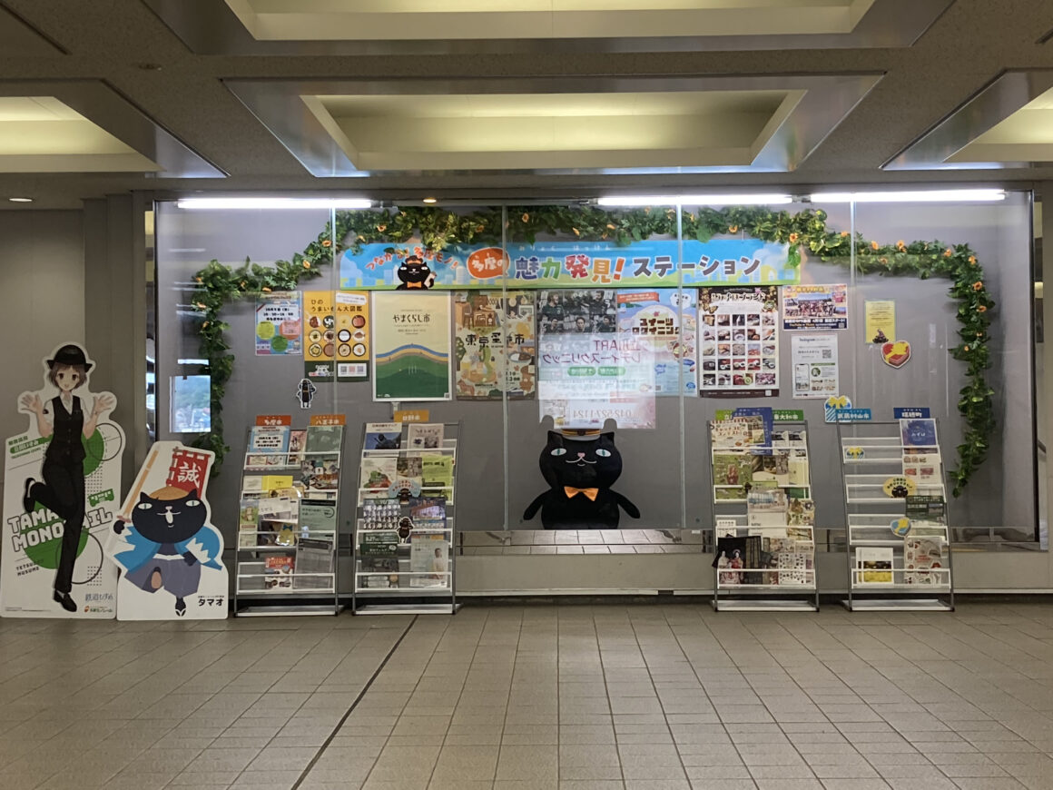 พอลงมาชั้น Gate สถานี จะเห็นว่าบรรยากาศเงียบสงบ สบายๆ มีตู้จัดแสดงและแจกเอกสารเพื่อการท่องเที่ยวให้ตรงนี้ด้วยนะ (ไม่แน่ใจว่าเอกสารและการตกแต่งจะเปลี่ยนไปตามฤดูกาลเรื่อยๆ ไหมนะ)