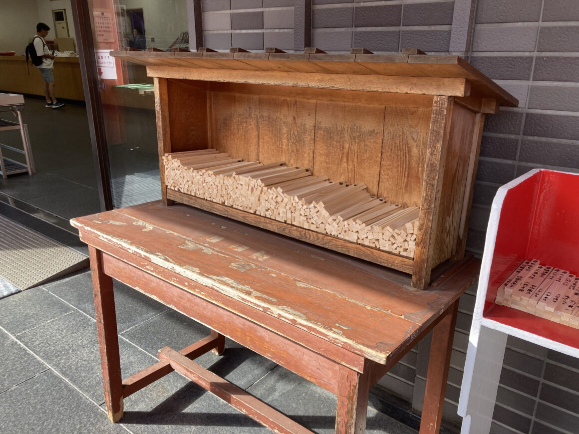 เราเลยถือโอกาสร่วมทำบุญในครั้งนี้ด้วยเลย ซึ่งทางวัดจะจัดเตรียมวางปากกาและแท่งไม้เอาไว้ให้เขียนแบบญี่ปุ่นเรียงลงมาจากด้านบน เป็นคำอธิฐานของเรา ซึ่งสามารถดูจากป้ายของทางวัดได้เช่นกัน จากนั้นก็เขียนชื่อของเรา หากต้องการเขียนชื่อหลายคนในครอบครัวในแผ่นเดียวก็ได้ หรือจะเขียนแค่นามสกุลก็ได้เช่นกัน