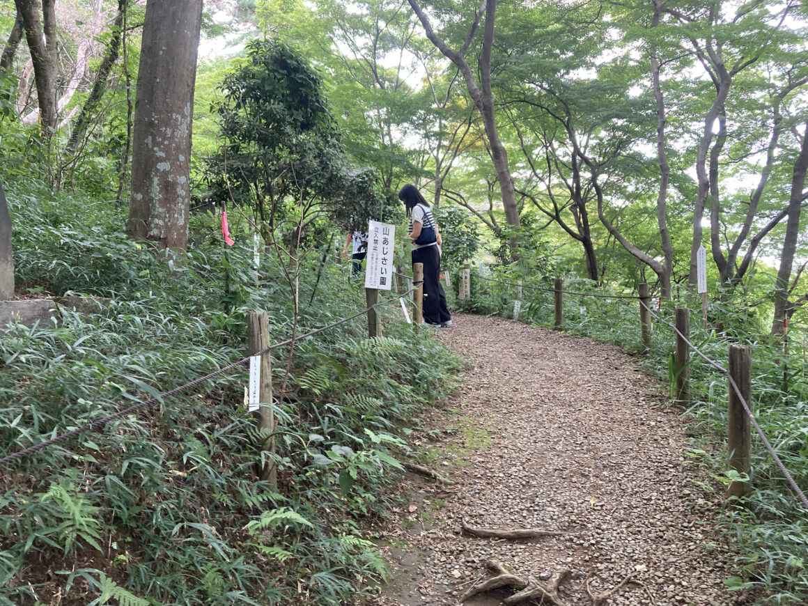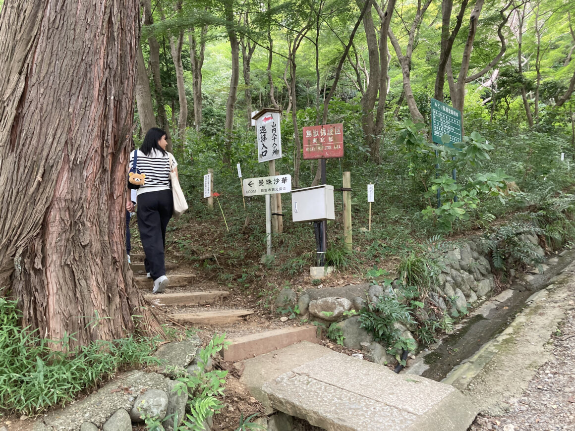 เดินไปทางไหนก็มีแต่บรรยากาศของธรรมชาติของต้นไม้สีเขียวปกคลุมภูเขาไปทั่ว และด้วยความที่อยู่ห่างจากสถานีรถไฟเลยทำให้ได้สัมผัสกับความเงียบสงบที่ไม่คิดว่าจะได้สัมผัสในโตเกียวแบบนี้ ยิ่งขึ้นไปสูงก็ยิ่งอากาศดีและเย็นสบาย เป็นเส้นทางเดินเขาที่ไม่น่าเบื่อและถือว่าเดินง่ายสำหรับคนทั่วไปมากเลย เพราะว่าในทางที่เป็นเนินหรือชัน จะมีการเอาไม้มาวางที่พื้นดินเพื่อสร้างให้เป็นบันไดและมีราวจับที่ทำจากเหล็กให้ในบางจุดแบบนี้ด้วย