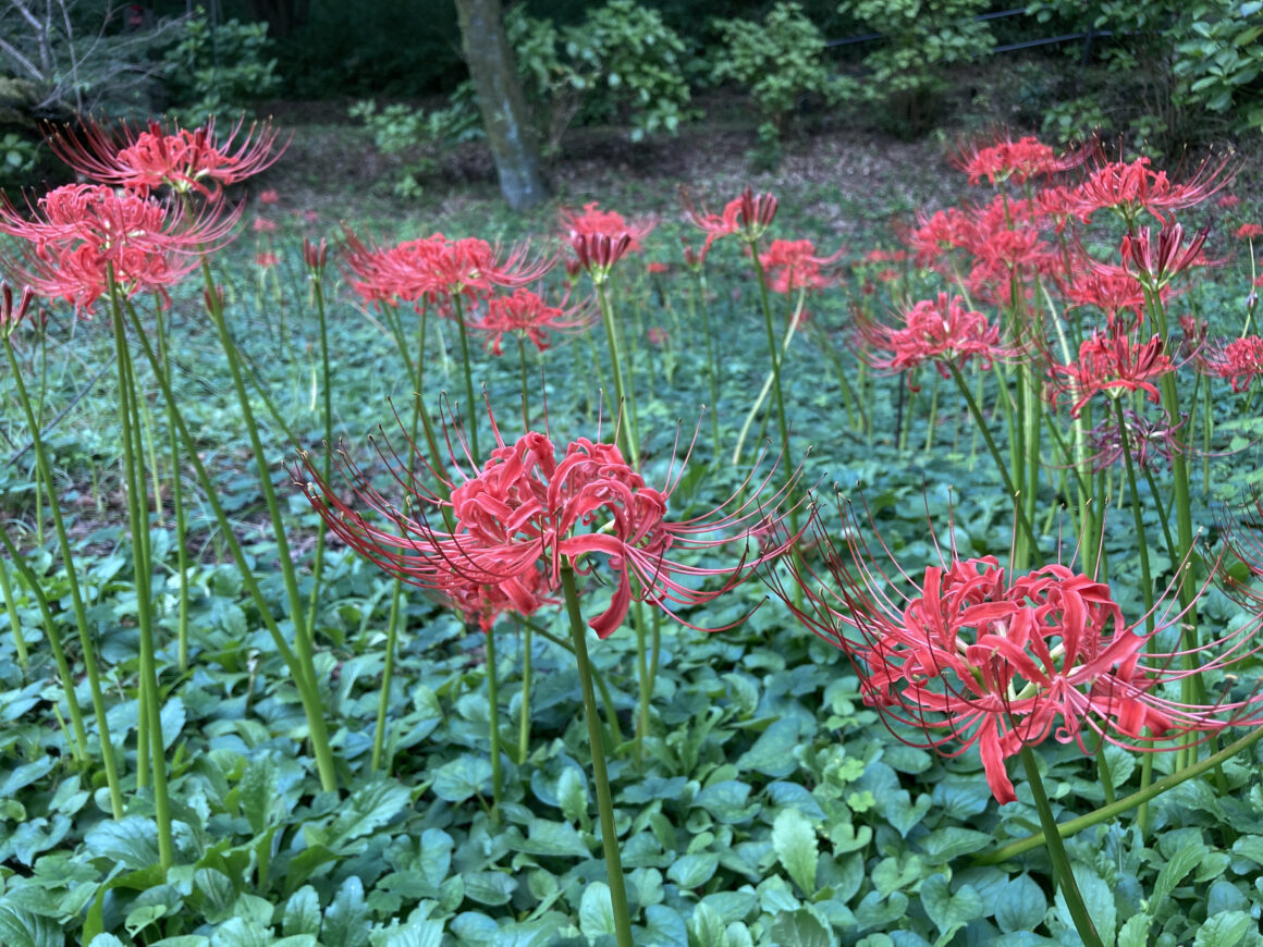 ในช่วงที่ไปเป็นช่วงเดือนกันยายน ก็จะยังมีต้นไม้สีเขียวและดอกฮิกันบานะ หรือดอกลิโคริส (Lycoris) บานอยู่ระหว่างทางเรื่อยๆ เลย