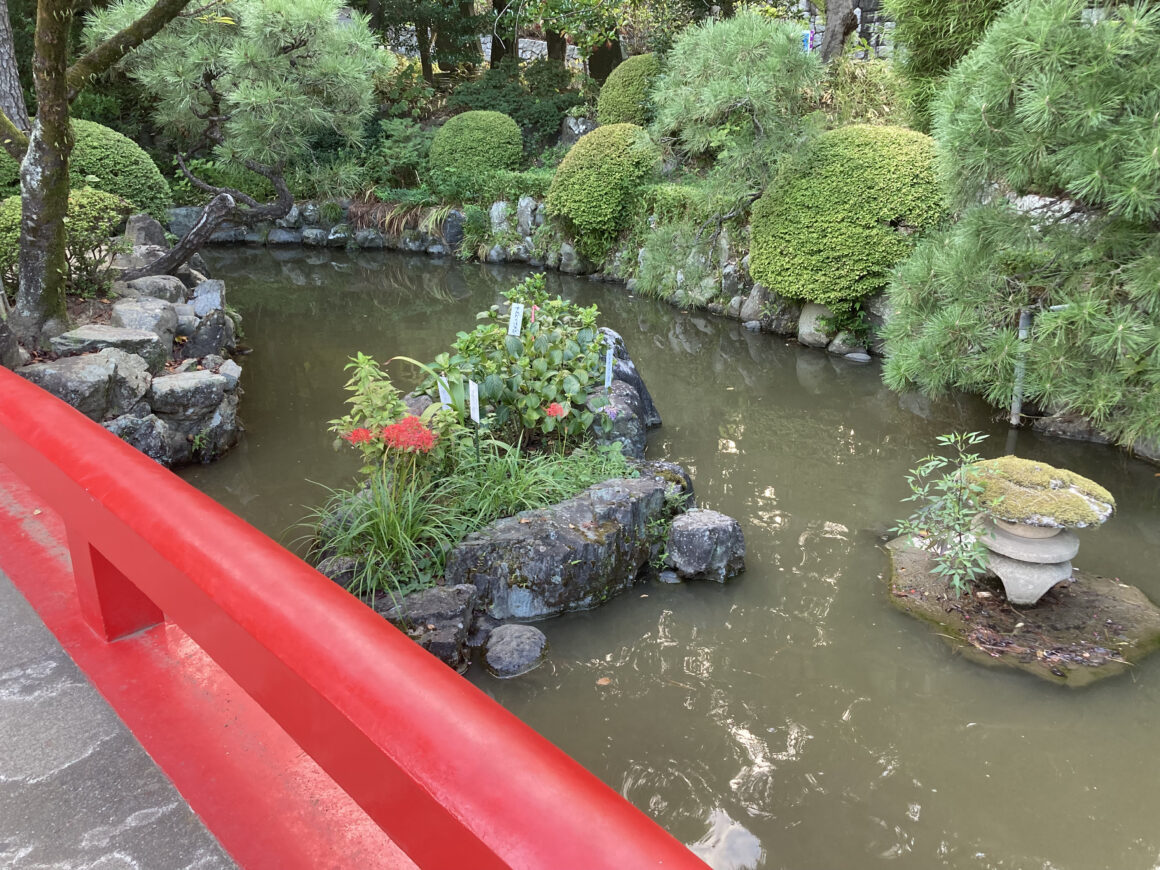 เดินเข้าไปก็จะเจอกับสะพานสีแดง บ่อน้ำที่มีปลาว่ายอยู่ เหมือนเป็นสวนย่อมเล็กๆ ของฮิจิคาตะ โทชิโซ