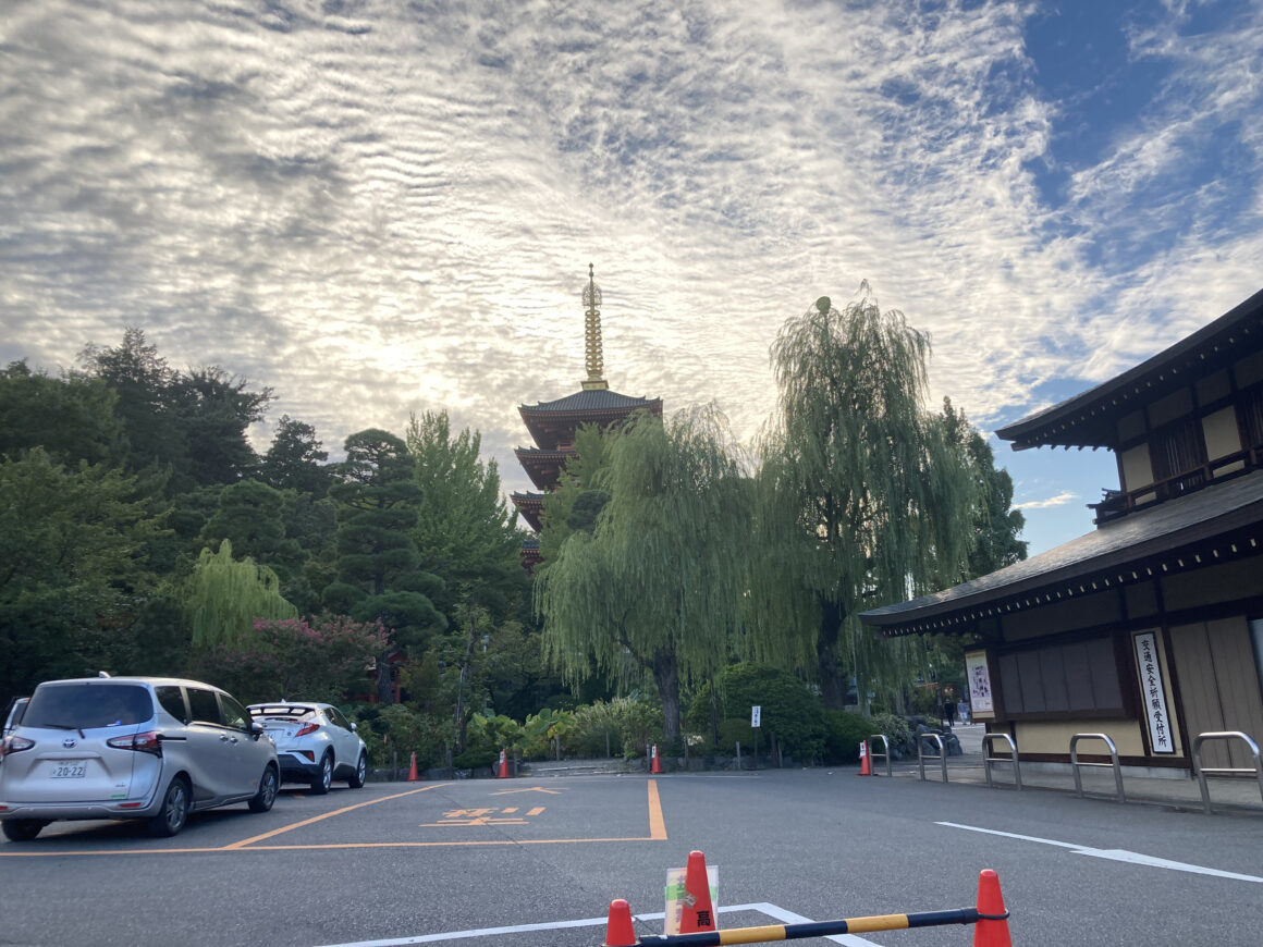 เราสามารถเดินออกจากข้างๆ อนุสรณ์สถานไปยังลานจอดรถได้เลย จากมุมนี้เราจะมองเห็นเจดีย์และท้องฟ้าสีสวยตัดกัน