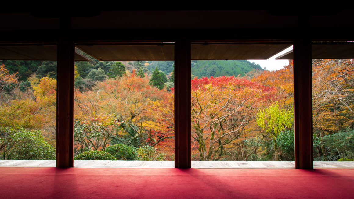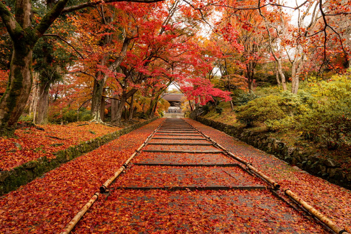 ในช่วงฤดูใบไม้ร่วง บรรยากาศภายในวัดจะถูกย้อมสีด้วยต้นเมเปิลสีสันสดใส ซึ่งจุดชมใบไม้เปลี่ยนสีที่ดีที่สุดคือ ทางเข้าและบริเวณรอบๆ หอเซกิซุยอิน (Sekisui-in Hall) ซึ่งปากทางเข้านั้นจะมีทางเดินที่ปูด้วยหินรูปทรงเพชร ด้านข้างจะมีต้นเมเปิลสีแดงเข้ม ส้ม เหลือง และต้นซีดาร์สีเขียว ส่วนบริเวณโดยรอบหอเซกิซุยอินนั้นก็รายล้อมไปด้วยต้นเมเปิลและต้นซีดาร์เช่นเดียวกัน