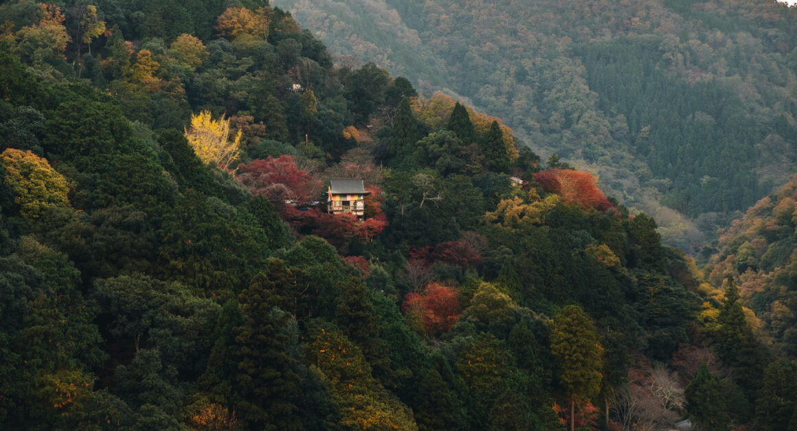 ภูเขาฮิเอ (Hieizan) เป็นสถานที่ที่ใบไม้จะเปลี่ยนสีเร็วกว่าตัวเมืองเกียวโต ซึ่งด้านบนภูเขาจะมีจุดชมวิวยอดนิยมอย่าง ‘วัดเอ็นเรียคุจิ’ (Enryaku-ji Temple) ที่ตั้งอยู่ในพื้นที่รอยต่อระหว่างจังหวัดชิกะและจังหวัดเกียวโต