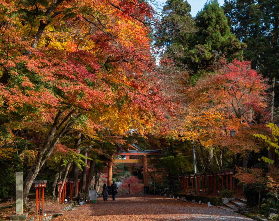 ศาลเจ้าแห่งนี้มีต้นเมเปิลกว่า 3,000 ต้น เมื่อช่วงฤดูใบไม้ร่วงมาถึง ทุกคนจะได้พบกับทัศนียภาพอันงดงามของใบไม้เปลี่ยนสีผสมผสานกับสถาปัตยกรรมอันวิจิตรของที่นี่