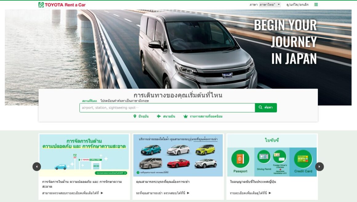 นอกจากนี้ เว็บไซต์ TOYOTA Rent a Car ยังรองรับภาษาไทยอีกด้วยนะ เลือกจองผ่านลิ้งค์นี้ได้เลย >> https://rent.toyota.co.jp/th/
