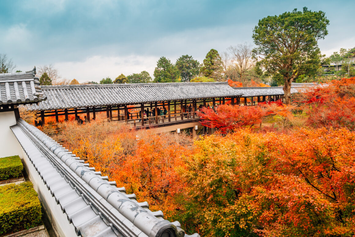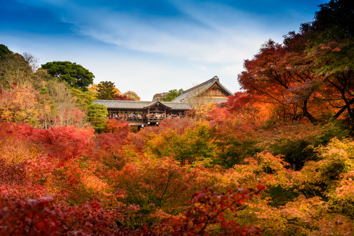 นอกจากความเก่าแก่ของอาคารวัดแล้ว ที่นี่ยังรายล้อมไปด้วยต้นเมเปิลกว่า 2,000 ต้น ทำให้วัดโทฟุคุจิโด่งดังในฐานะจุดชมวิวใบไม้เปลี่ยนสีที่ได้รับฉายาว่า “ทะเลหมอกสีแดงเข้ม” ซึ่งมองเห็นได้จากสะพานทั้ง 3 แห่งของวัด ได้แก่ สะพานกาอึนเคียว (Gaun-kyo Bridge) สะพานเอ็นเกะซึเคียว (Engetsu-kyo Bridge) และสะพานสึเท็นเคียว (Tsuten-kyo Bridge)