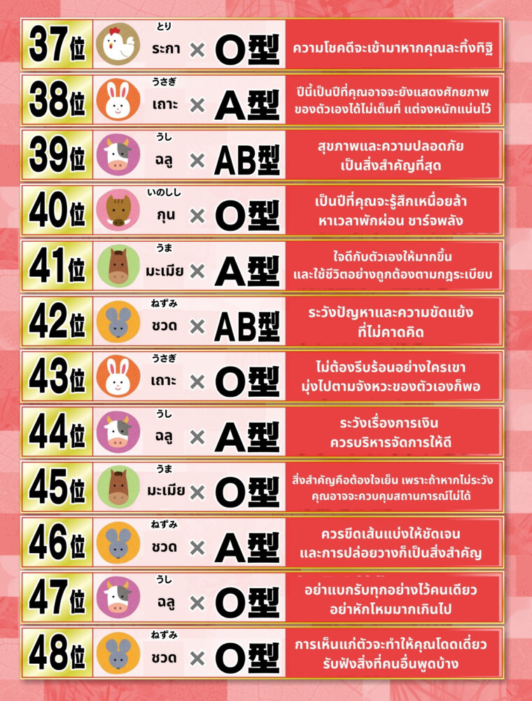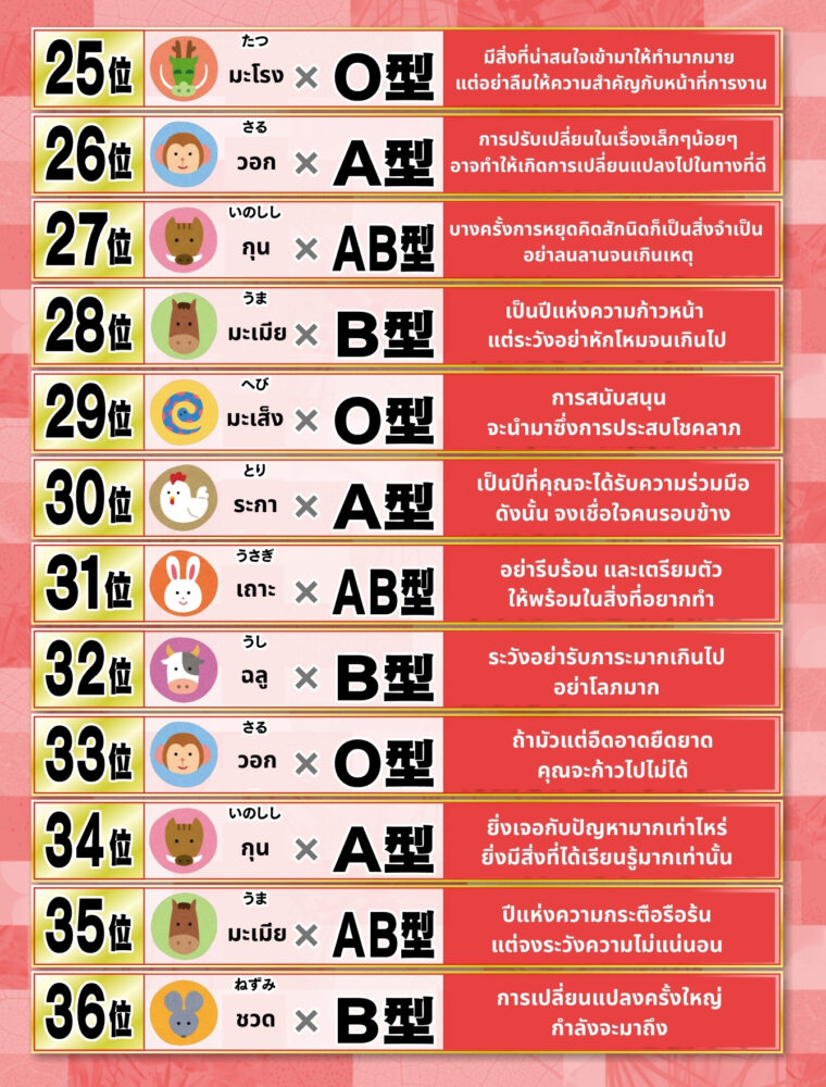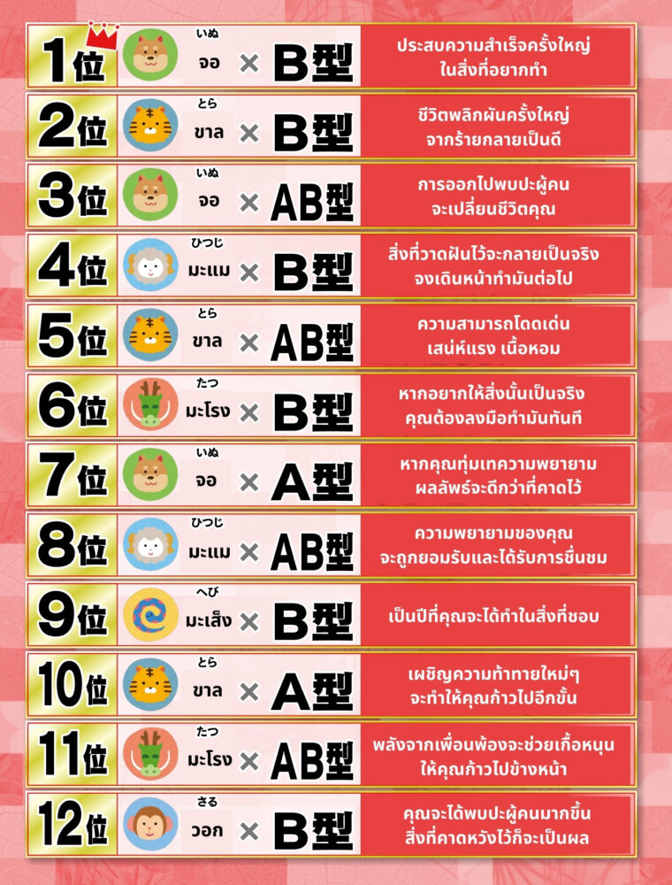 จัดอันดับคนดวงดีแบบญี่ปุ่น ปี 2026 (ปีนักษัตร + กรุ๊ปเลือด)