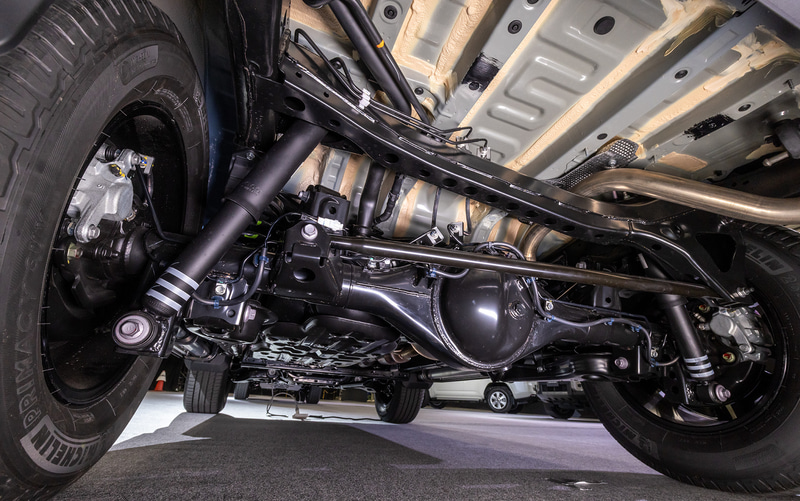 ในขณะที่ Land Cruiser 300 และ 250 ใช้แชสซีแบบ GA-F (TNGA Ladder Frame) และ Land Cruiser 70 ใช้แชสซีแบบดั้งเดิม แต่รุ่น FJ เลือกใช้แชสซีแบบ “IMV” ซึ่งมีผลงานโดดเด่นในประเทศที่มีสภาพถนนขรุขระ ระบบช่วงล่างด้านหน้าเป็นแบบดับเบิลวิชโบน ส่วนด้านหลังเป็นแบบแอ็กเซิลลิงก์ (Trailing Link Axle) เน้นความทนทานและง่ายต่อการบำรุงรักษา อีกทั้งแชสซีแบบ IMV ยังมีอะไหล่แต่งและอุปกรณ์เสริมมากมายในตลาดทั่วโลก จึงคาดว่า Land Cruiser FJ จะเป็นรุ่นที่มีศักยภาพสูงสำหรับสายแต่งและผู้ชื่นชอบการปรับแต่งรถอีกด้วย