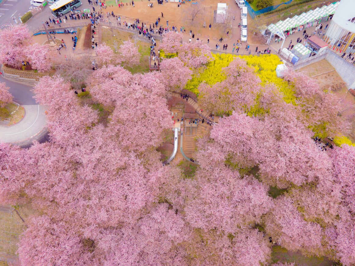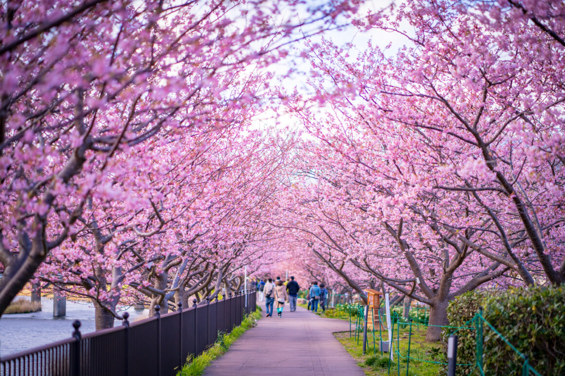 เดินชมสวนและเพลิดเพลินไปกับซากุระที่บานอย่างรวดเร็วตั้งแต่เดือนมกราคม ต่อมาไม่นาน ก็จะถึงคิวของซากุระพันธุ์โซเมอิ โยชิโนะที่จะบานเต็มที่ในช่วงปลายเดือนมีนาคม และพลาดไม่ได้กับซากุระกลีบซ้อน (Yaezakura) ที่จะบานสวยงามในช่วงเดือนเมษายน