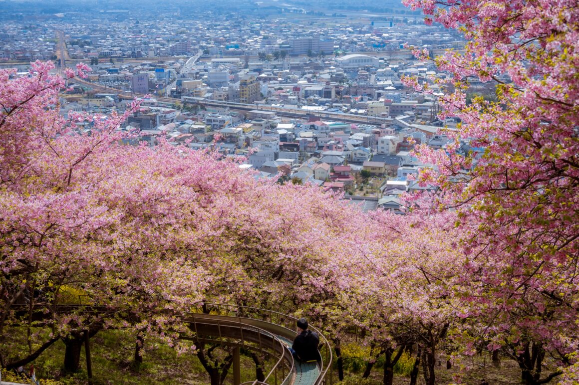หากนึกถึงจุดชมซากุระที่ใกล้กับโตเกียวและมีซากุระสายพันธุ์คาวาซึซึ่งเป็นสายพันธุ์ที่บานเร็วและงดงามแล้วนั้น ทุกคนจะต้องไม่พลาด ‘สวนสาธารณะนิชิฮิระบาตาเกะ’ (Nishihirabatake Park / 西平畑公園)