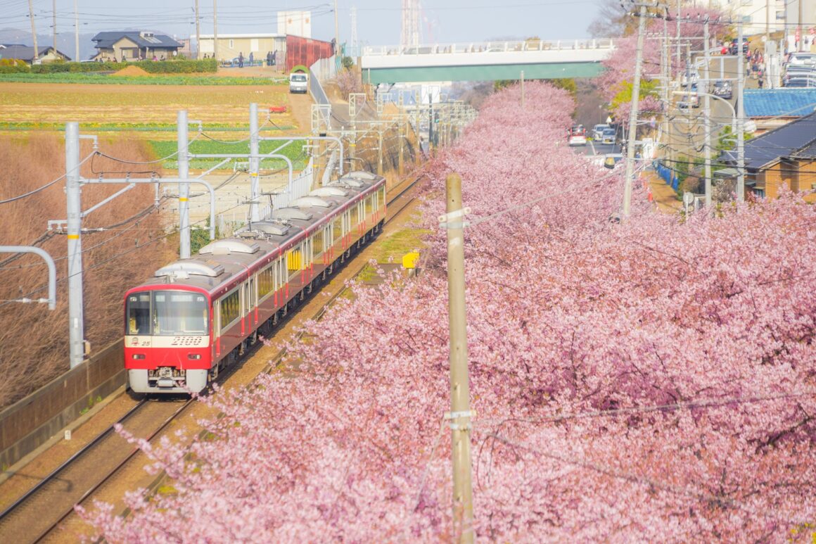 4. เทศกาลชมซากุระ ริมทางรถไฟเคคิวคุริฮามะ (Miurakaigan Cherry Blossom Festival) จ. คานากาวะ