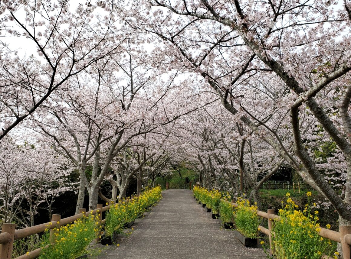 ด้วยทัศนียภาพของแนวคันดินติดแม่น้ำที่เรียงรายไปด้วยต้นซากุระพันธุ์โซเมอิ โยชิโนะกว่า 500 ต้น เป็นระยะทางยาวกว่า 2 กิโลเมตร เคียงคู่ไปกับดอกนาโนะฮานะสีเหลืองตลอดทั้งทาง หากใครได้มาเห็นภาพบรรยากาศเช่นนี้แล้ว เราเชื่อเลยว่าจะต้องกลายเป็นภาพจำของฤดูใบไม้ผลิที่แสนสดใสชวนให้ประทับใจเป็นที่สุด