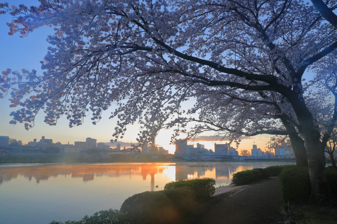 ในช่วงฤดูใบไม้ผลิ รอบบริเวณจะมีต้นซากุระบานสะพรั่งสวยงามเรียงรายกันอยู่กว่า 700 ต้น จนเกิดเป็น “อุโมงค์ซากุระ” ที่ย้อมท้องฟ้าให้กลายเป็นสีชมพู สร้างทัศนียภาพที่งดงามตระการตา