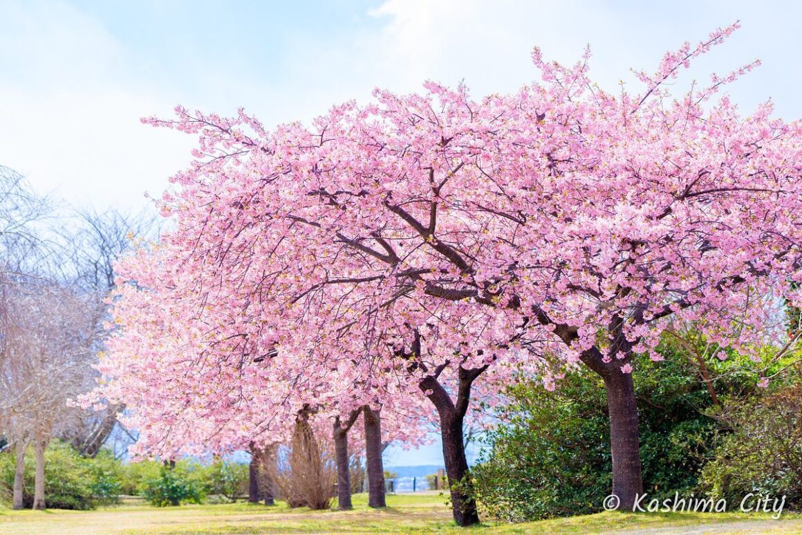 กินลมชมวิว ในบรรยากาศแสนสบายรายล้อมด้วยซากุระพันธุ์โซเมอิ โยชิโนะ และซากุระอีกหลากหลายพันธุ์ กว่า 350 ต้น ณ สวนสาธารณะคาชิมะชิโรยามะ (Kashimashiroyama Park / 鹿島城山公園) จุดชมซากุระในสวนสาธารณะของเมืองคาชิมะ ที่นี่ตั้งอยู่ใกล้กับศาลเจ้าคาชิมะอันโด่งดัง ในแต่ละปีจะมีช่วงเทศกาลวัน ‘คาชิมซากุระเดย์’ ซึ่งเป็นวันแห่งการชมซากุระ เหมาะสำหรับการมาเที่ยวแบบครอบครัวเป็นอย่างมาก