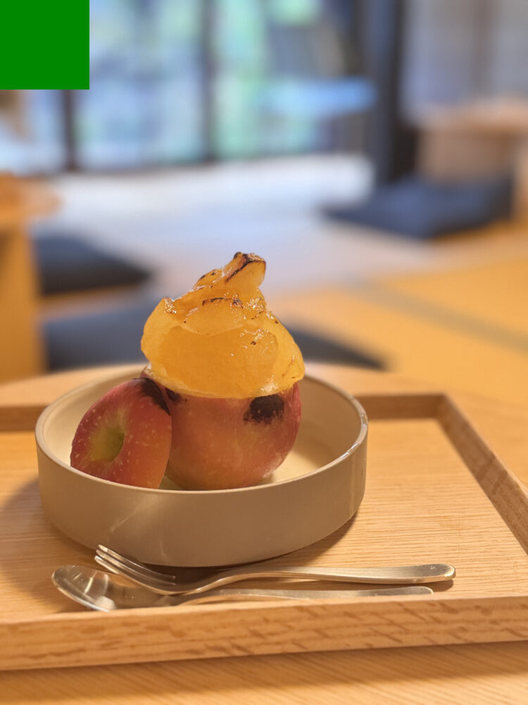 店裡的招牌是「蜜煮蘋果」,使用一整顆蘋果慢慢燉煮而成,口感柔和綿密,甜而不膩。